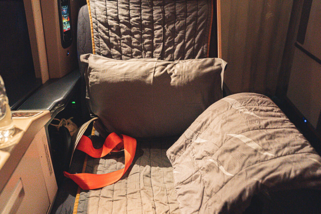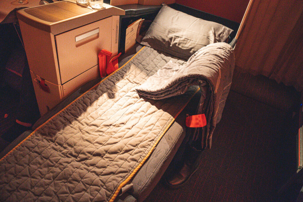 食事の前には、担当のCAの方が一席一席、丁寧にベッドメイクをしてくれました。