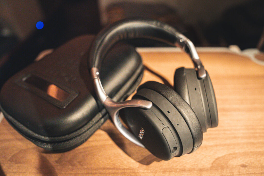 ヘッドフォンはフカフカで肌触り良く、ノイズキャンセル機能を備えたDenon製。