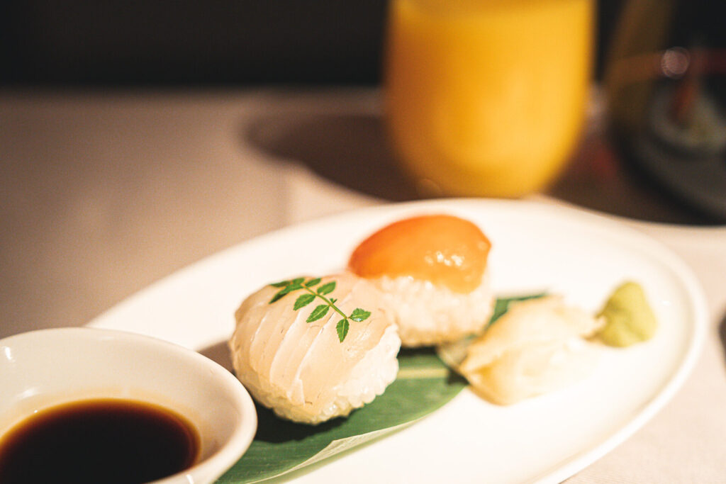 前菜はかわいい手毬寿司。口の中でとろける美味しさです。