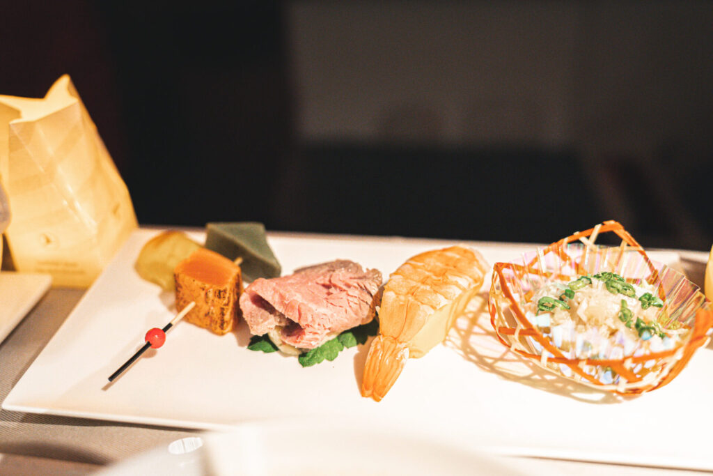 空の上とは思えない、美しい盛り付けですね。さすがシェフが乗り込む飛行機。