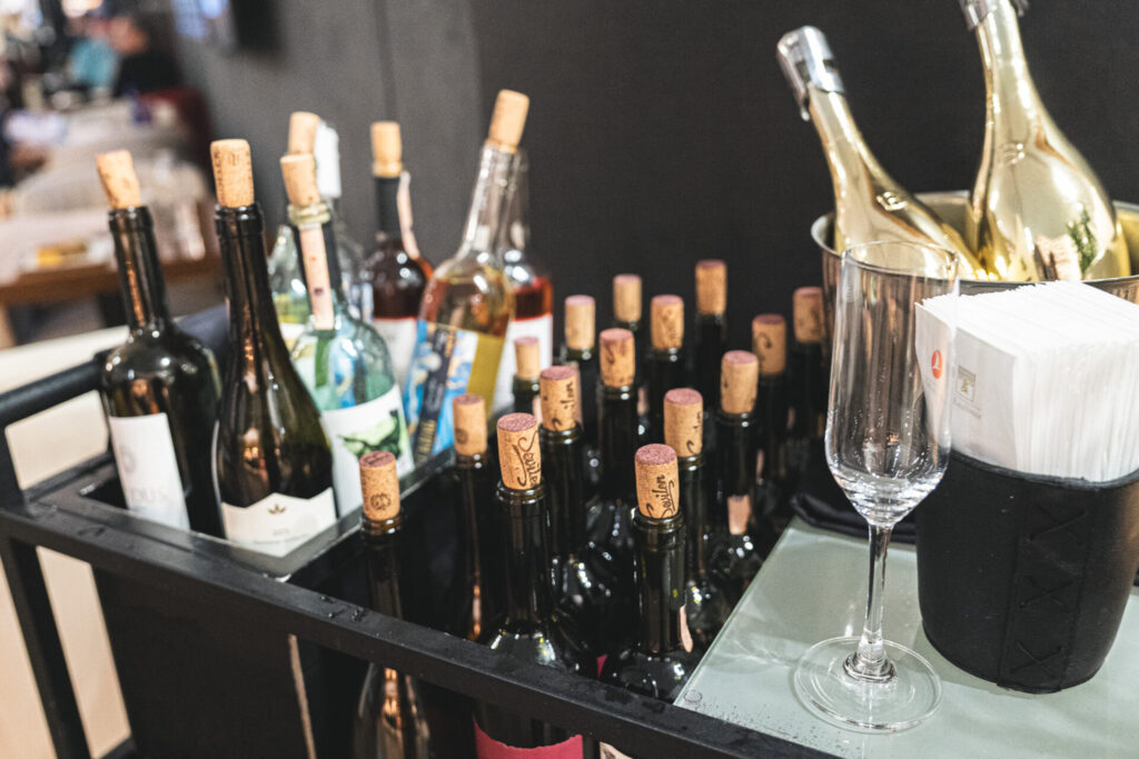 引き出したテーブルにテーブルクロスがひかれたら、ナッツとドリンクでディナーがスタートです。