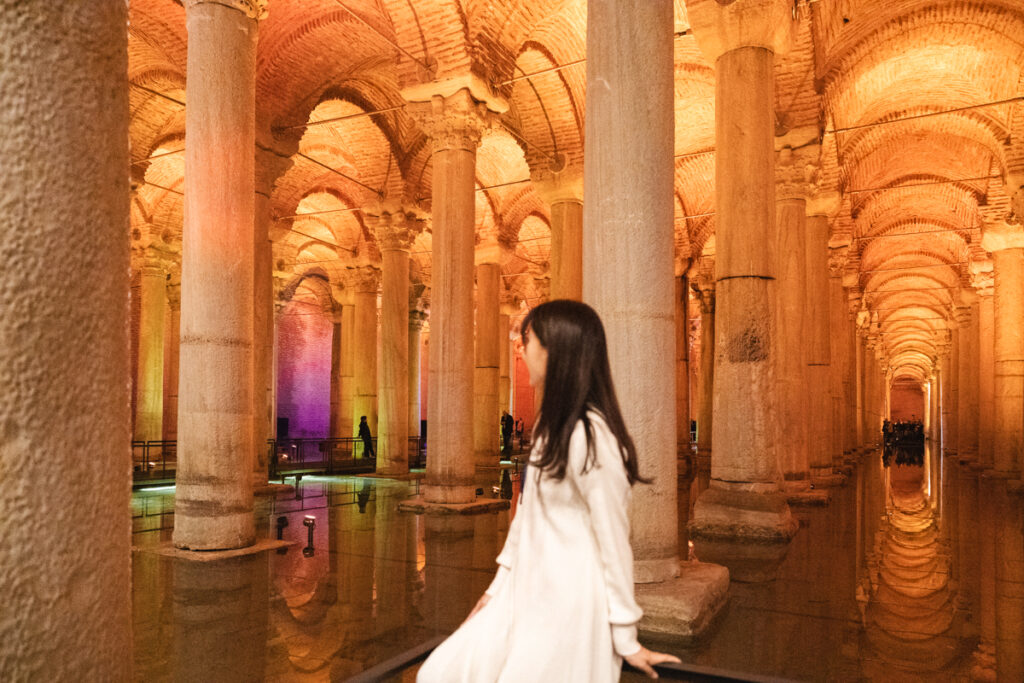 イスタンブールで最大の規模を誇る貯水槽で、広大な空間には336本もの大理石の柱が並びます。柱の基部には「メデューサの頭」が彫られたものも。