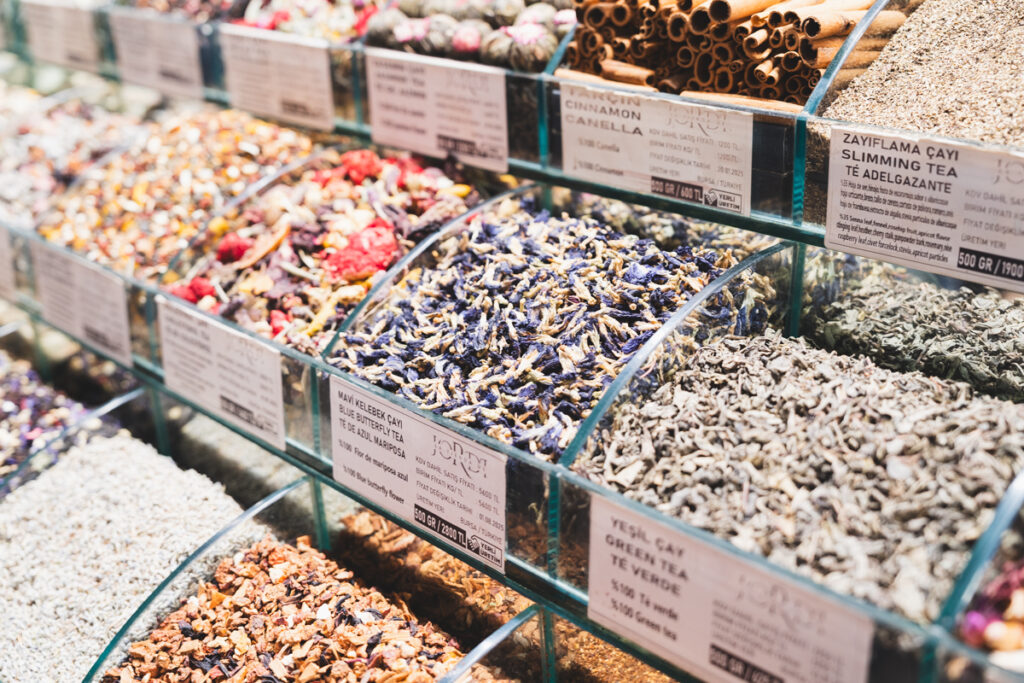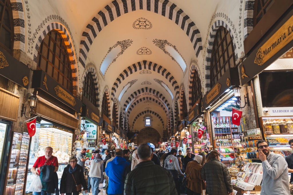 店先にはサフランやクミン、ドライフルーツ、ロクム、ナッツなどが並び、歩くだけで異国感満載。イスタンブールの活気を五感で楽しめます。