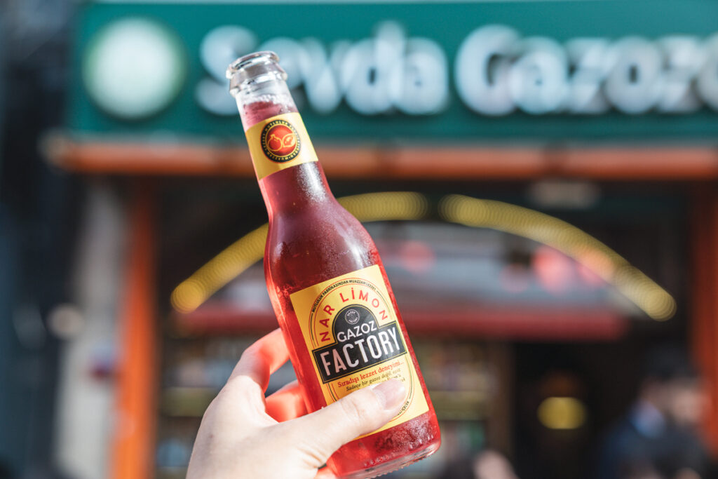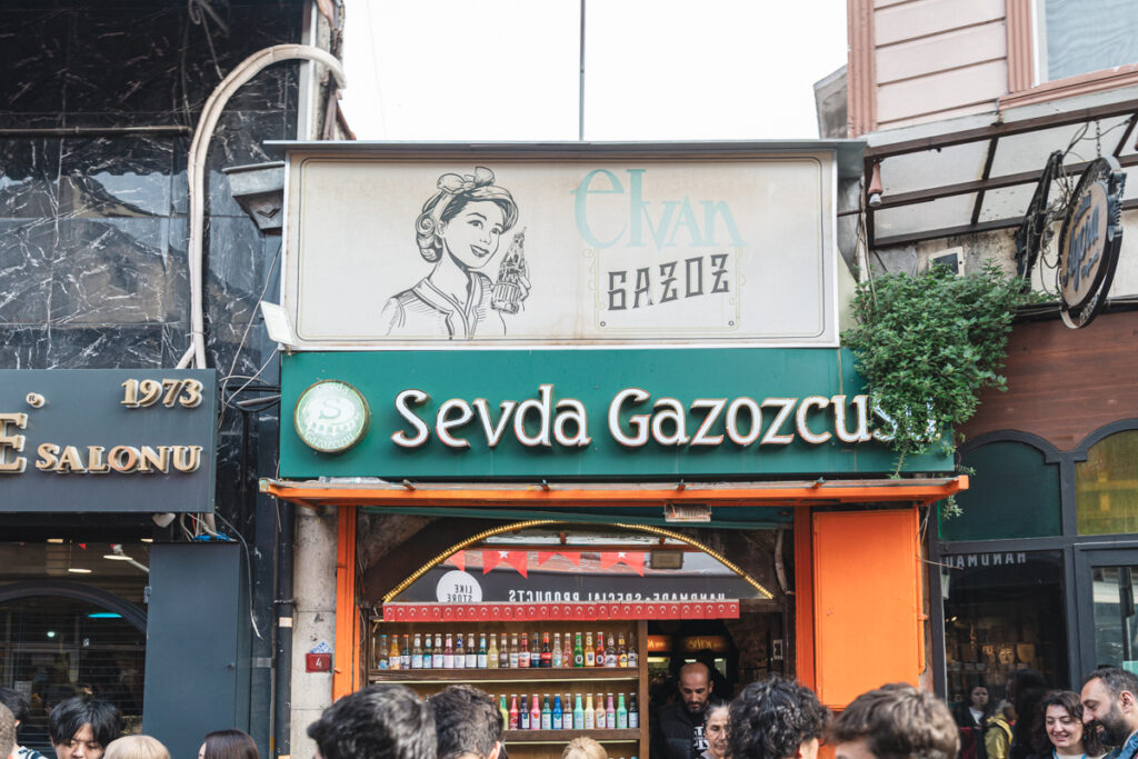 「Sevda Gazozcusu」は、レトロな看板がいい味をだしている老舗のドリンクショップ。
