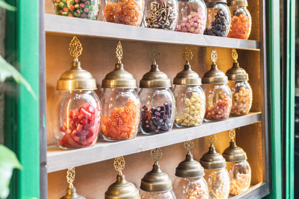 1879年から続くキャンディショップ「Balat Merkez Şekercisi」は、店の軒先にバラットらしいカラフルな可愛いキャンディがずらりと並びます。