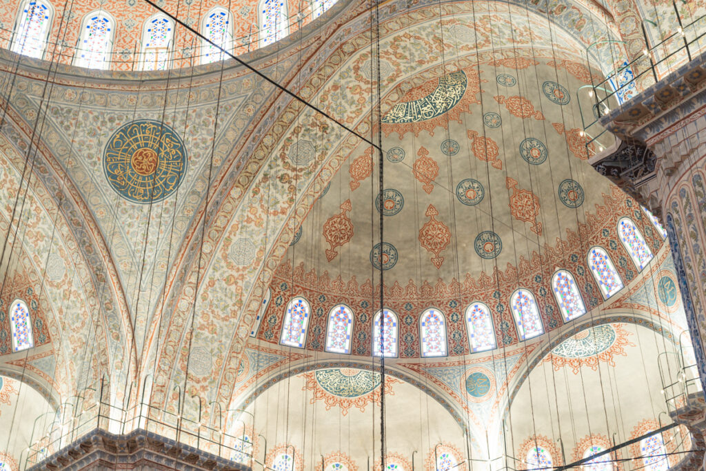 数万枚のイズニック製の青いタイルと美しいステンドグラスに彩られた内部の美しさは、圧巻の一言!