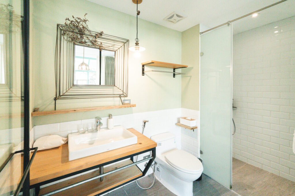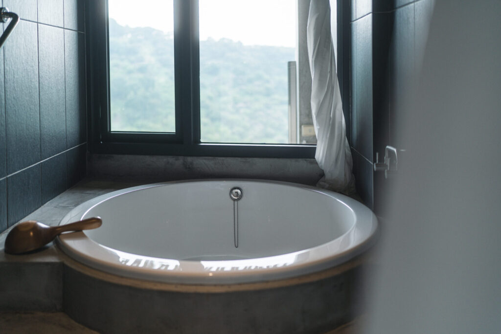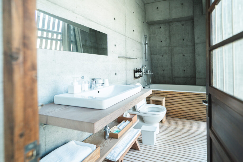 夜はもちろんのこと、お昼間にも入りたくなるような爽やかなバスルームです。