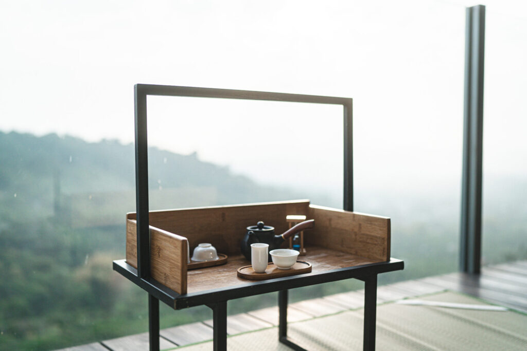 2階は中国茶のセットが置かれた寛ぎスペースに。実は3階もあり、ちょっとした寝室になっています。