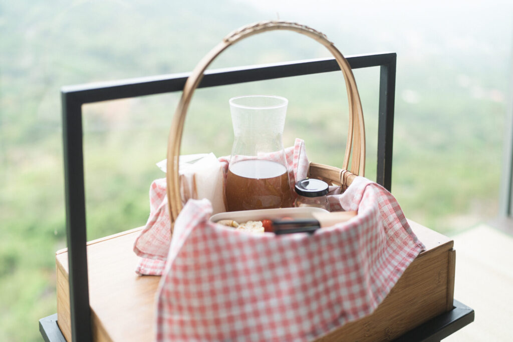 朝食は、お部屋にまるでビクニックのようなバスケットが届けられます。