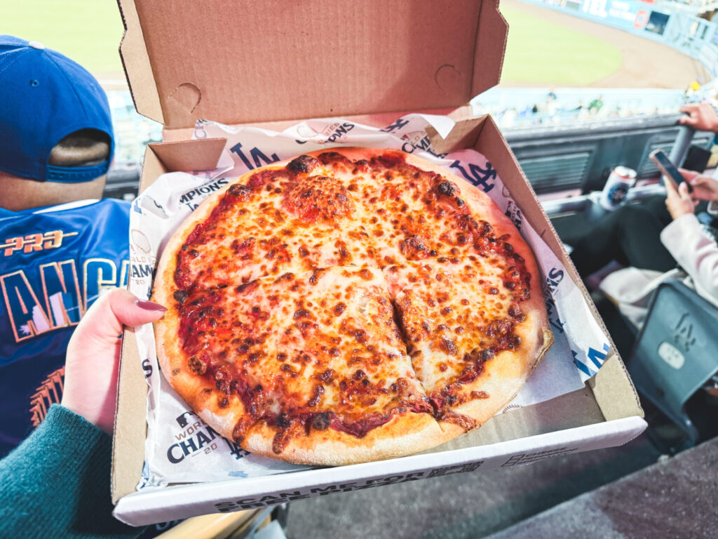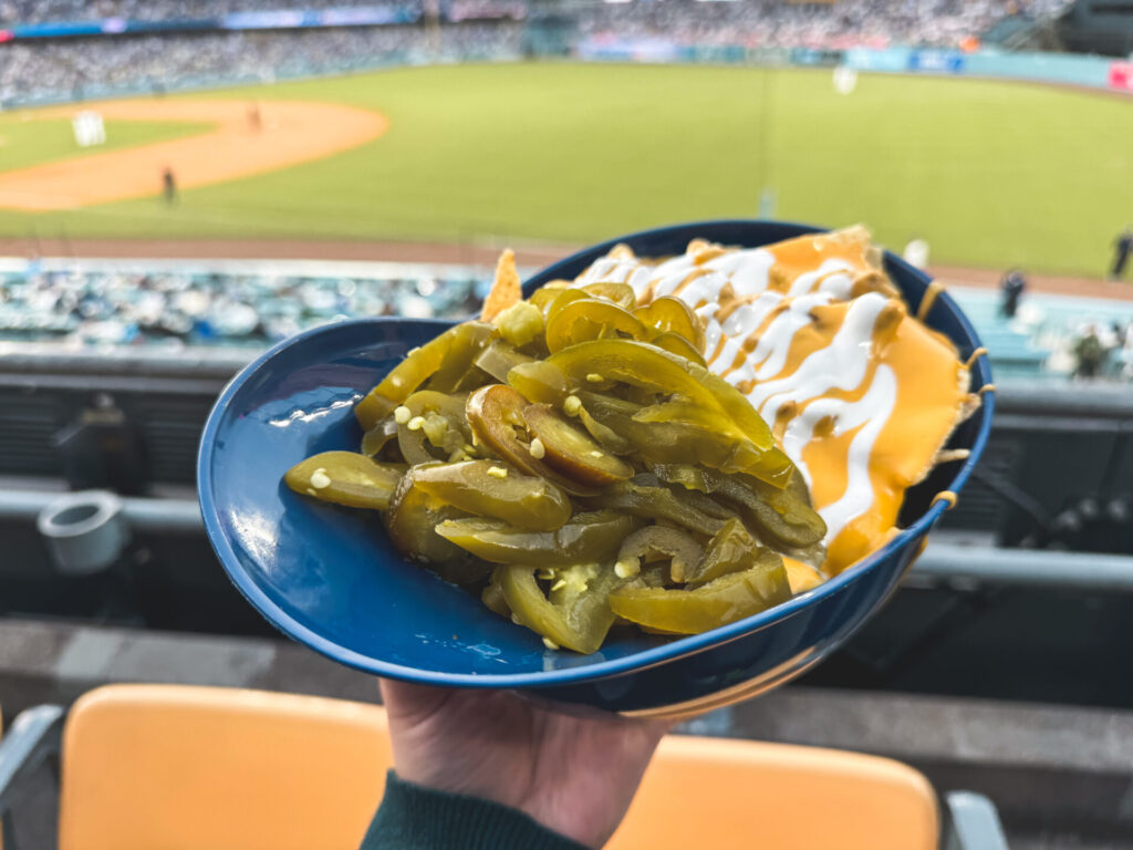 他にもドジャースのヘルメットに入ったナチョス「Loaded Nacho Helmet:20.99ドル」は、観戦の記念にぴったり。ヘルメットの中にはずっしりと重いナチョスが入って驚きました!トルティーヤチップスに、チーズとお肉たっぷりで背徳感を味わえるアメリカの球場グルメです。