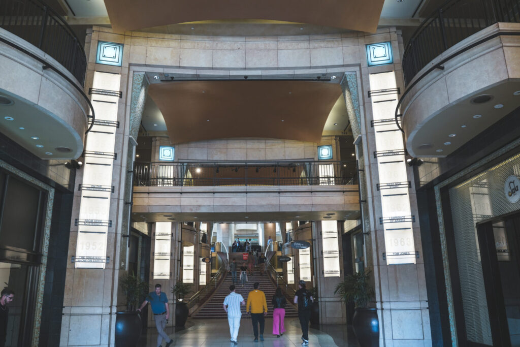 階段の両脇にある柱「アワード・ウォーク」には、歴代の作品賞受賞作のタイトルが刻まれており、アカデミー賞の歴史を肌で感じられます。