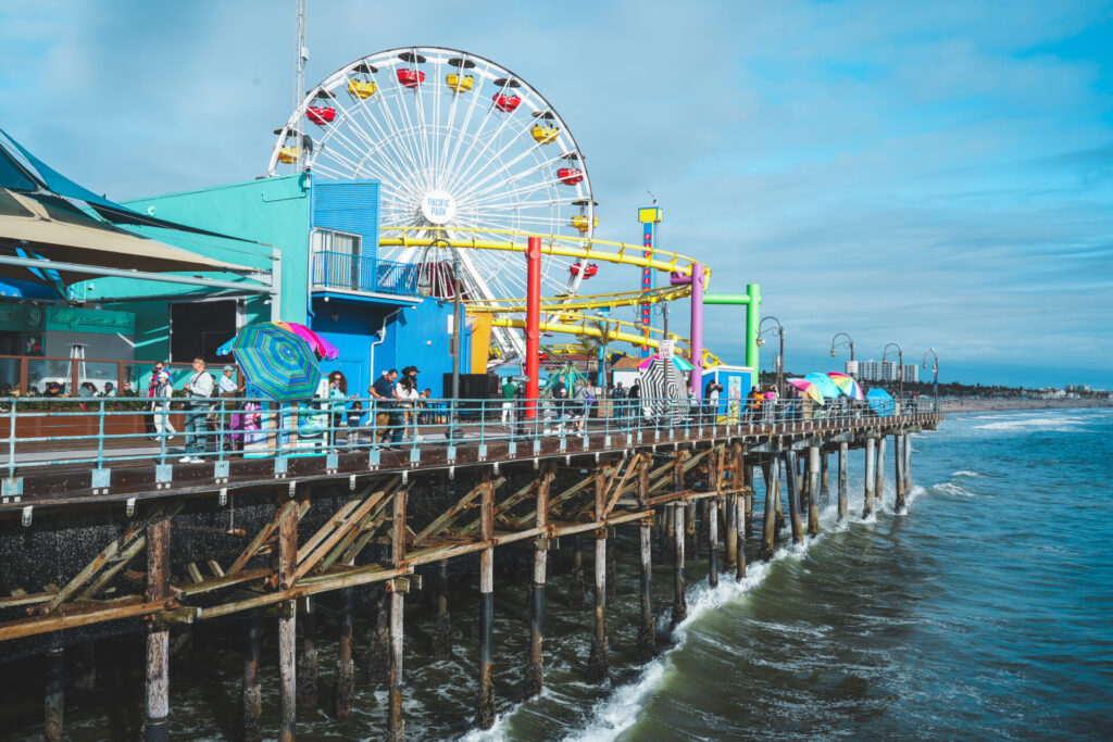 海の上にずらっと続く桟橋の上には、遊園地やレストラン、お土産屋さんが並び、海風を感じながら散策できるアメリカらしいスポットです。