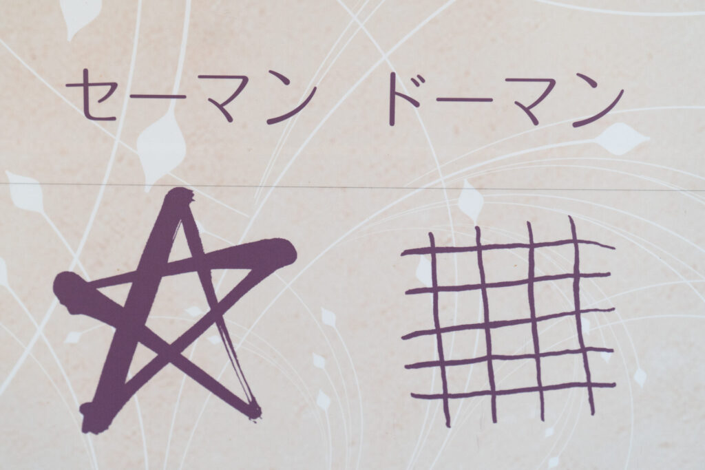 そしてもうひとつ。相差を知るうえで欠かせないのが、「セーマン・ドーマン」という二つの印です。これは海女さんたちが大切に受け継いできた、魔除けのおまじない。漁に出るとき、磯着や漁具に身につけるのだそうです。