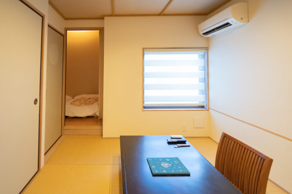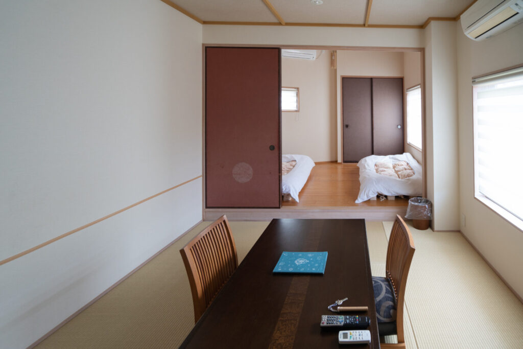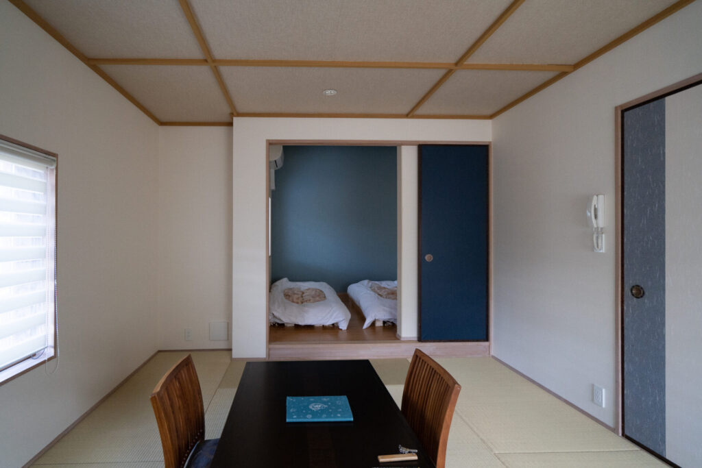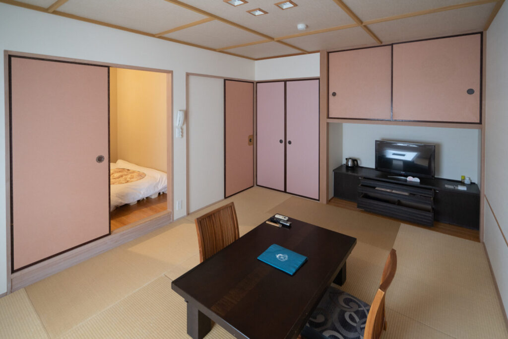 今回宿泊したお部屋は和洋室の「防風」。和洋室らしく、寝室はリビングスペースと分かれているスタイルです。