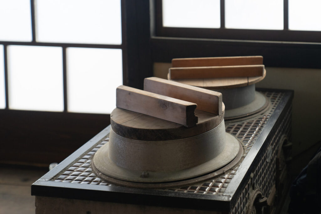 築80年のこの建物は、もともと住居だったものを活かした空間。奥には当時の台所や囲炉裏がそのまま残り、かつての暮らしの気配を今も感じられる空間です。