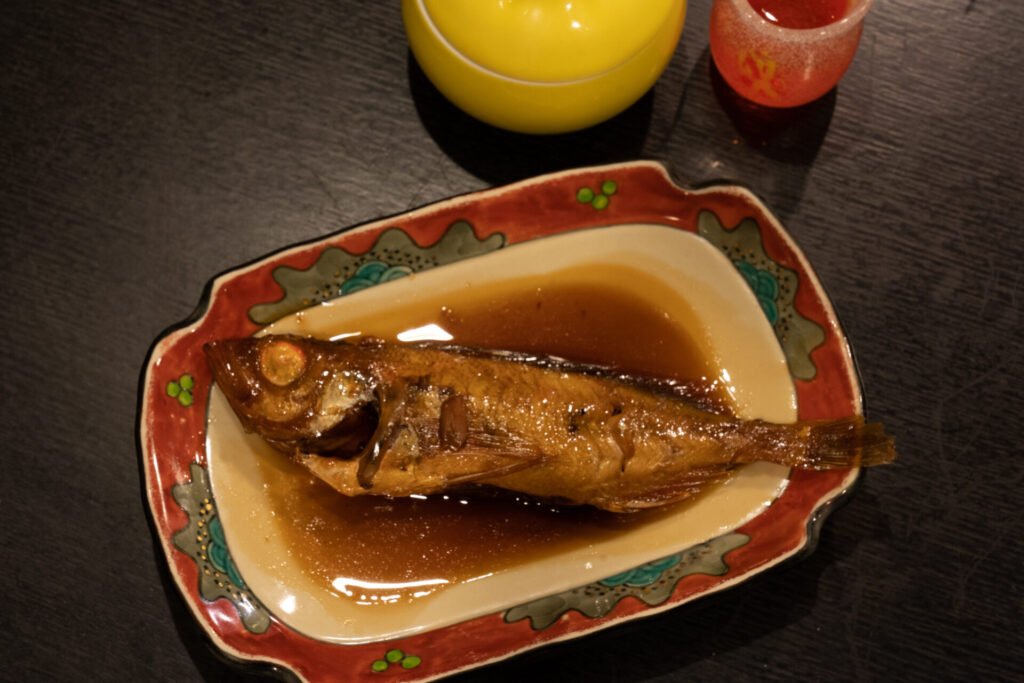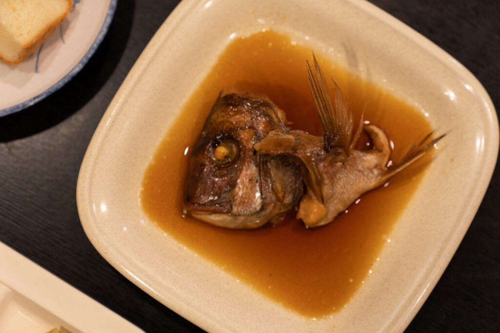 煮魚はこの日はカサゴ。味付けは、漁師だったさおりさんのお父さんから教わった方法だそうです。