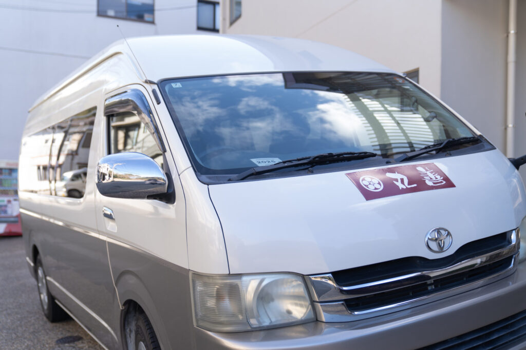 名古屋駅から鳥羽駅まで行き、そこから「丸善」の送迎車でお宿へ。鳥羽駅からは車で約25分、窓の外にはのどかな景色が流れていました。