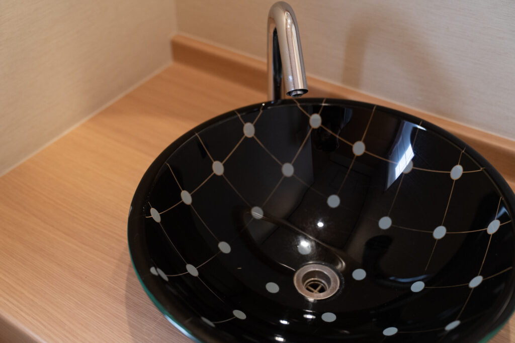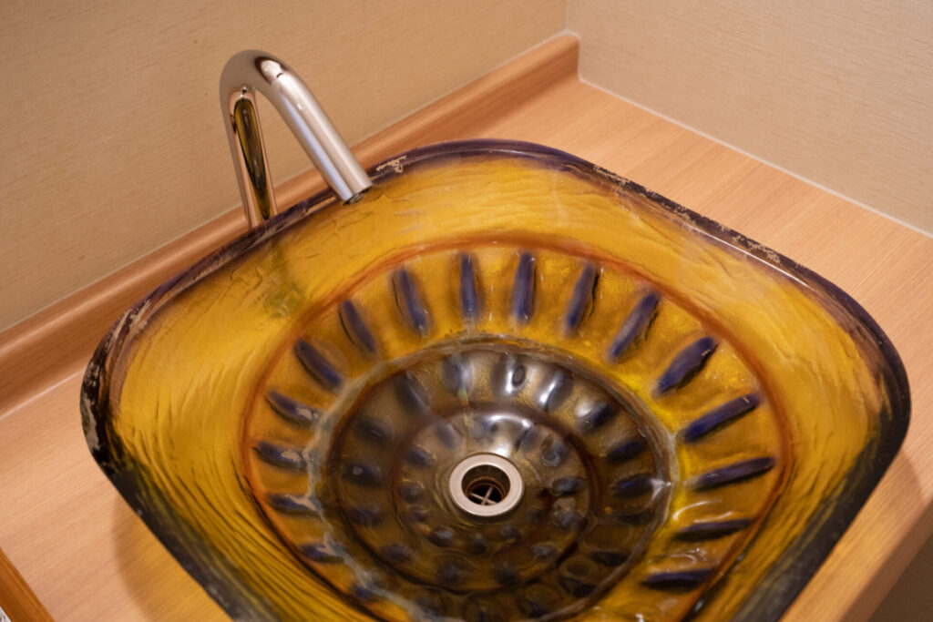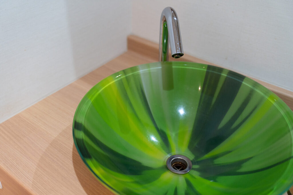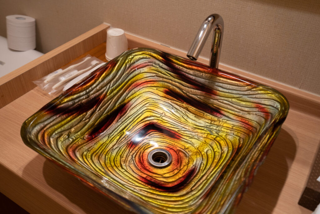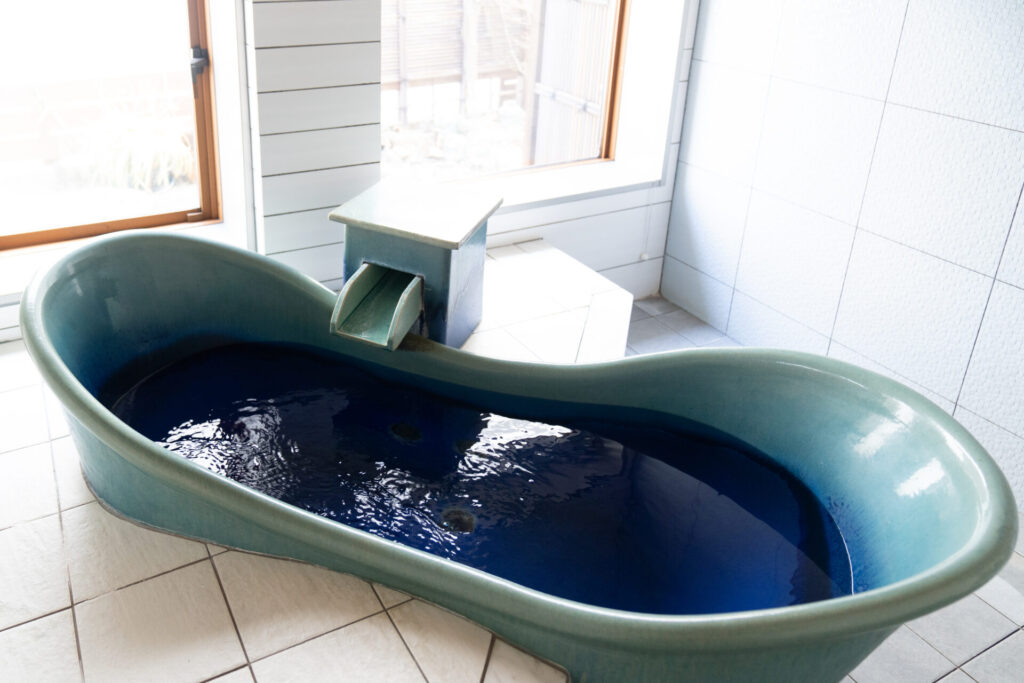 もうひとつの貸切風呂は、海の上に浮かんでる気持ちになれるような「波」。こちらも手足を伸ばしてゆっくりくつろげました。