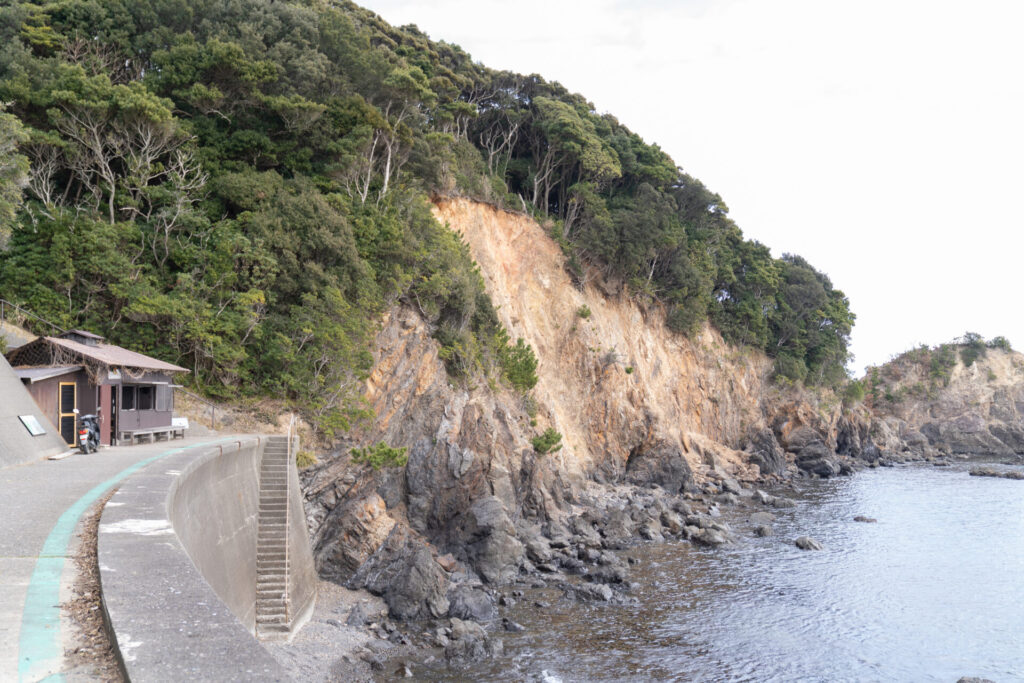 海沿いに沿ってあるいていくと、崖の側にポツンと立っているのが「相差かまど 前の浜」。