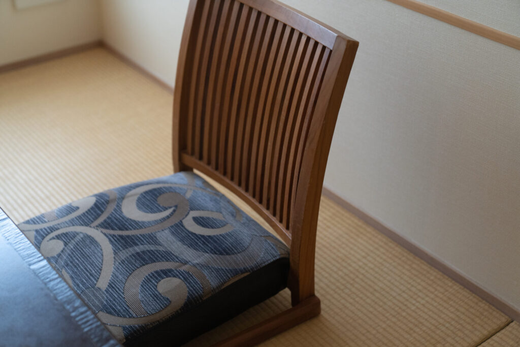 座椅子にもこだわりが。ふかふかで座り心地がよく、食後にのんびりする時間が心地よかったです。柄は相差の海をイメージしているのだとか。