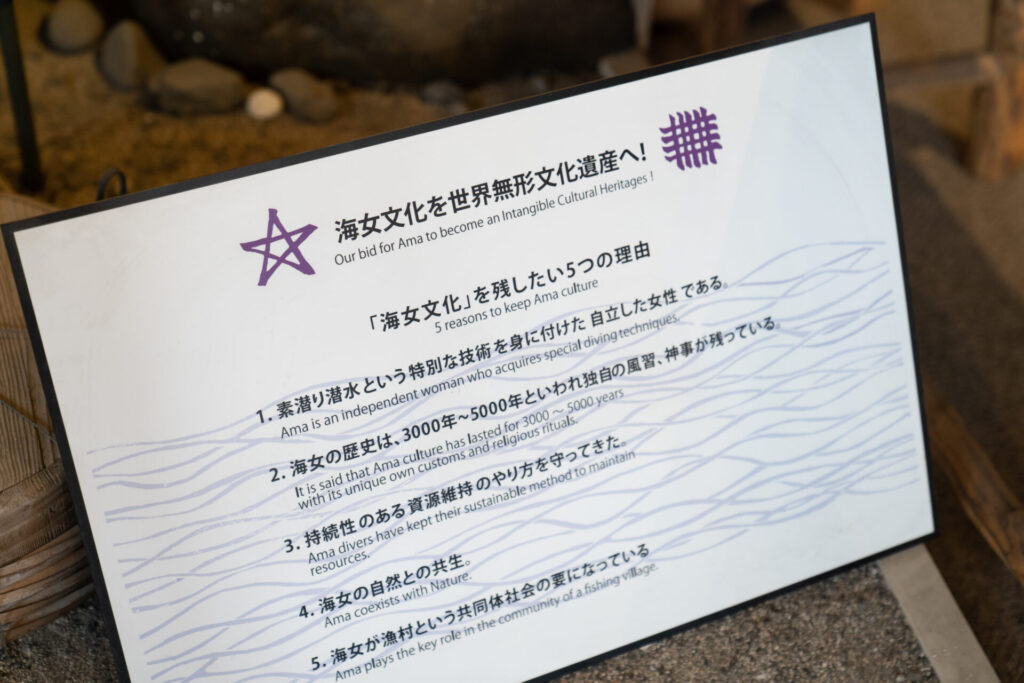 まず驚いたのは、海女の歴史が約3,000年〜5,000年ともいわれていること。はるか昔から、女性たちが素潜りで海に入り、海と向き合いながら暮らしてきたという事実に、衝撃を受けました。