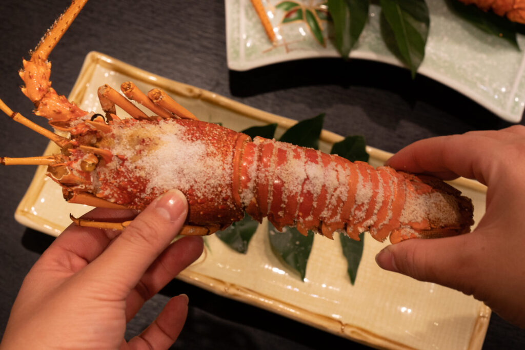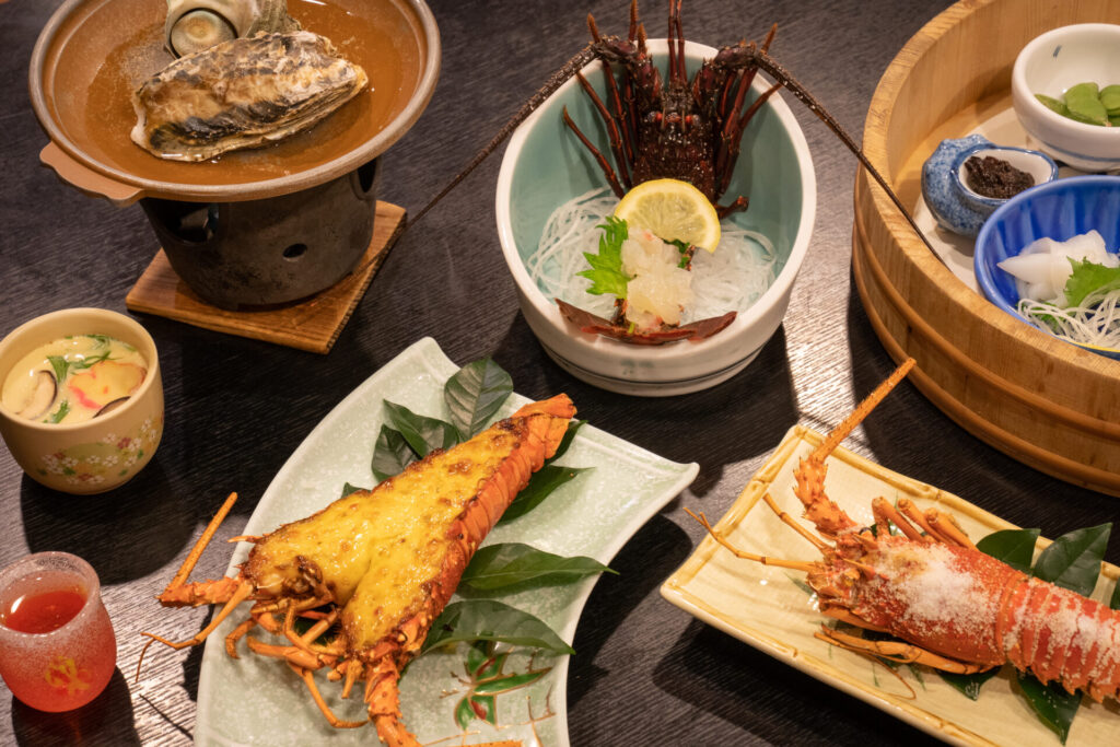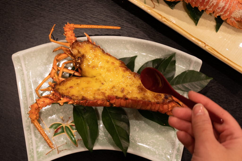 今回予約したプランは、伊勢海老が3尾つく「伊勢海老網漁コース」。お造り・タルタル焼き・鬼殻焼きと、同じ伊勢海老でも味わいが変わる食べ比べができる豪華な内容です。