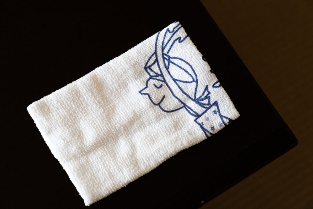 丸善のかわいいロゴマークが入ったタオルはお持ち帰り可能でした。