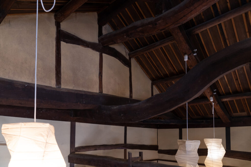 中に入ると、まず目に入るのは高い天井と力強い梁。梁は当時のまま残されているそうで、かつては養蚕も行われていたのだとか。長い年月を重ねた空間に、今の相差の魅力がやさしく息づいていました。