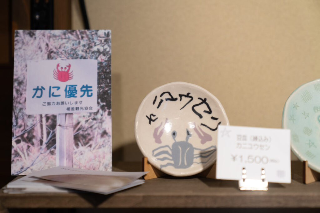 相差には「かに優先」の看板があるそうで、それをモチーフにしたユニークな豆皿も。