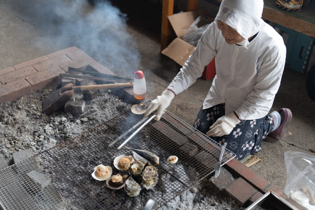 目の前で焼いてくれたのは、現役海女の中村さん。にこっと笑うその姿がとてもチャーミングで、すぐにファンになってしまいました。