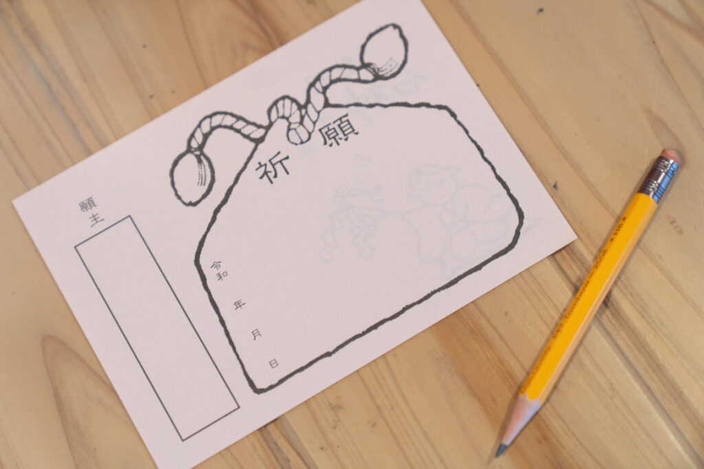 お願いごとは絵馬ではなく、専用のピンクの用紙に書くスタイルで、「願いはひとつ」と決まっています。