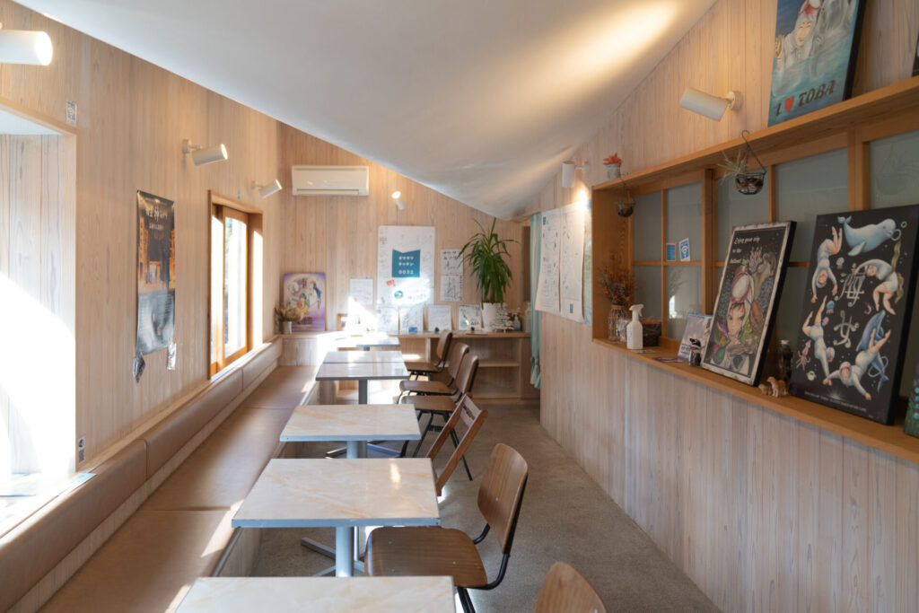 店内に入ってまず目を引いたのは、少し変わった形の天井。聞くと、船底をイメージしているのだとか。海の町らしい遊び心が、さりげなく効いていました。