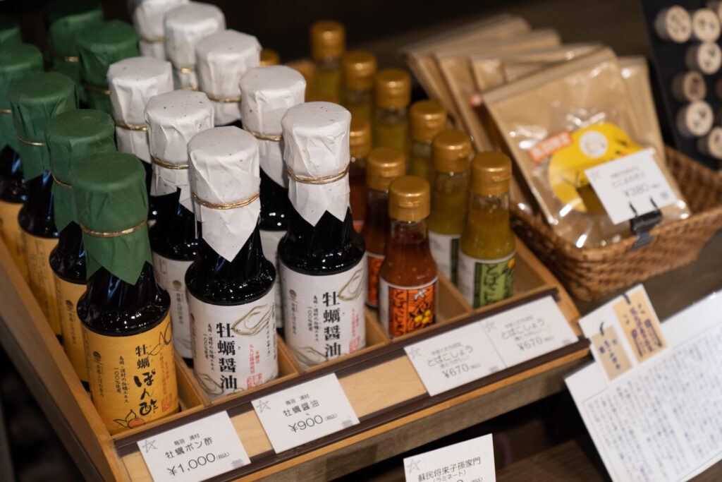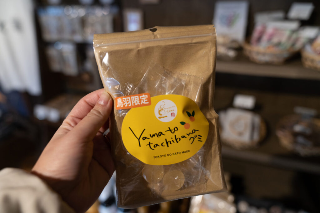 鳥羽市の花「大和橘」という、小さな金柑のような柑橘を使ったグミや、牡蠣醤油など、鳥羽らしい味わいの品も揃っていました。