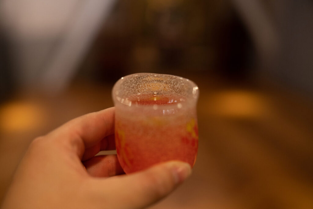まずは梅の食前酢で乾杯。梅は畑で採ってきたものを漬けているそうで、仕込みの丁寧さが最初から伝わってきます。