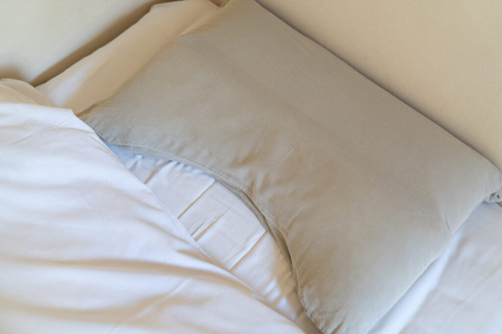 枕は、オリジナルのカーブが特徴で、寝返りの動きを妨げにくく、頭・首・肩まわりをやさしく支えるつくりに。首まわりがラクに感じて、旅先なのに寝つきがよかったのが印象的でした。