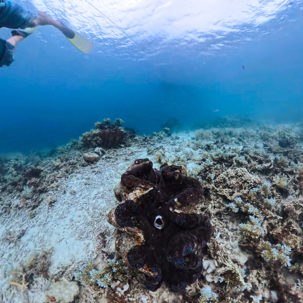 ここは絶滅危惧種である世界最大の二枚貝、大シャコガイの保護エリア。