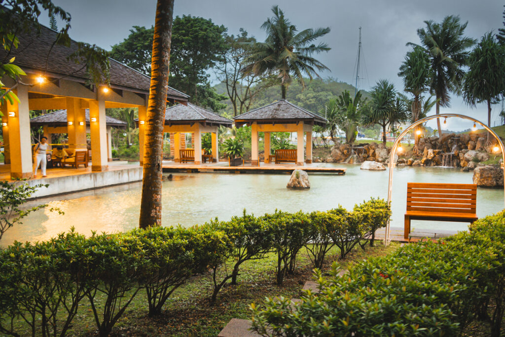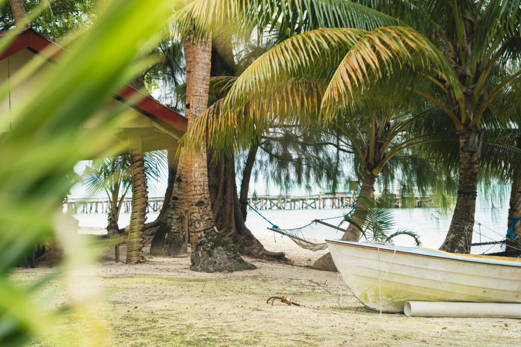 ヤシの木の小道を辿っていくと、木陰のハンモックや魚が泳ぐフィッシュポンド、約250m続く白砂のプライベートビーチなど、どこを切り取っても絵になる風景が続きます。