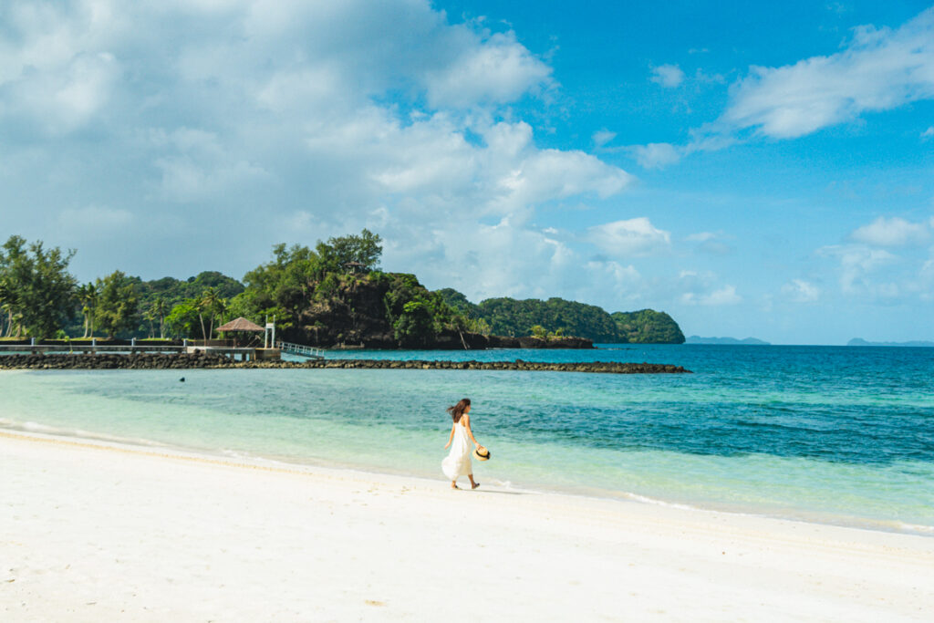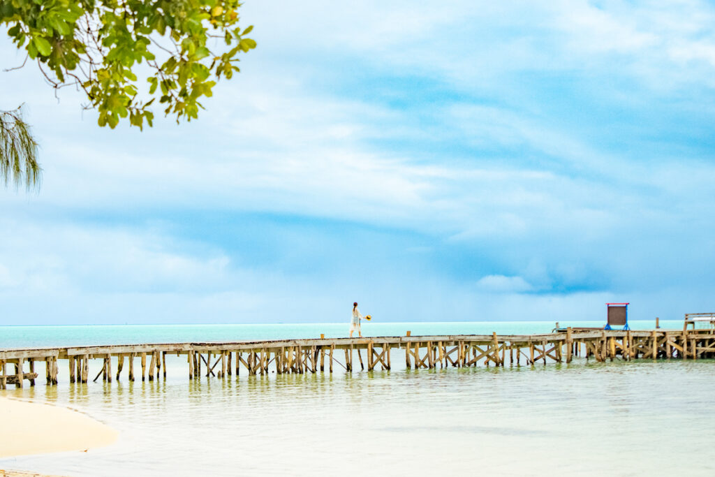 淡いブルーのグラデーションを描く海に、どこまでも続いていく眩い真っ白なパウダーサンドは、きっと天国へと続く道に見えるのでしょうね。