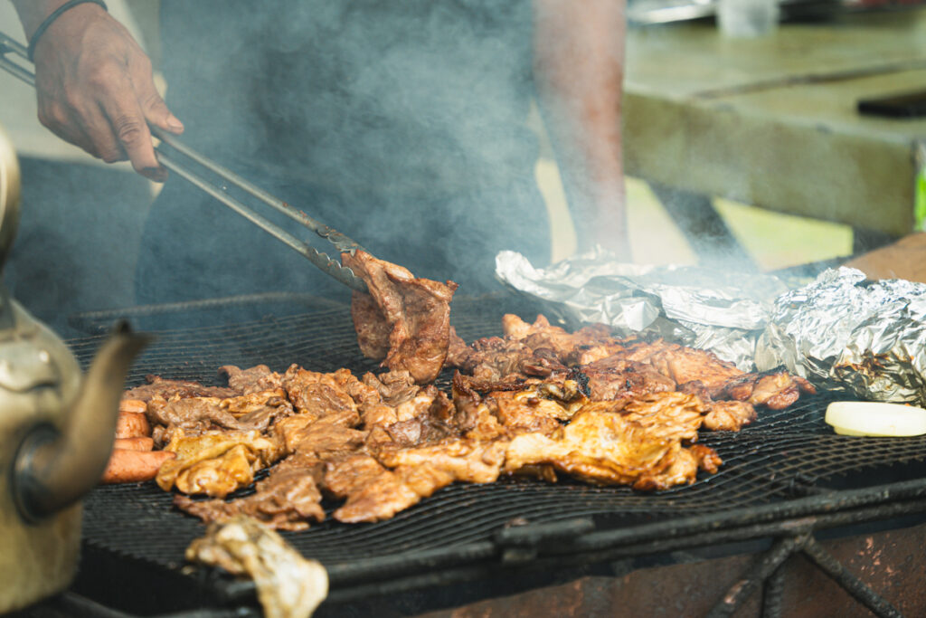 島の中央では、すでにBBQの準備が万端!漂う香ばしい匂いと、パチパチとはぜる音。