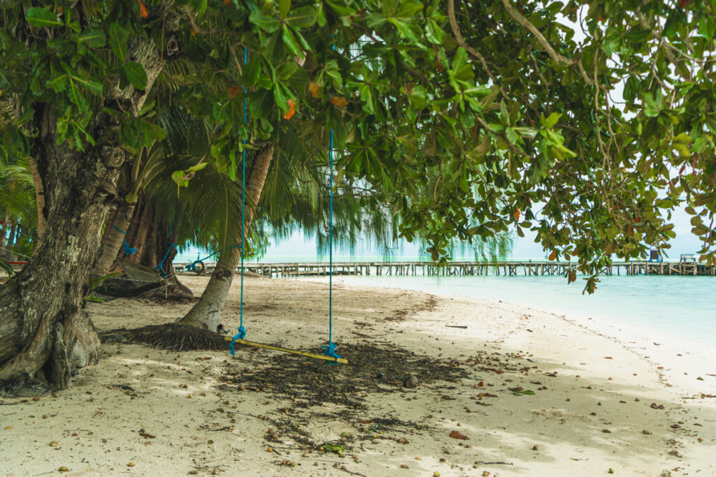 ビーチの木陰には、あちこちにハンモックやブランコが。