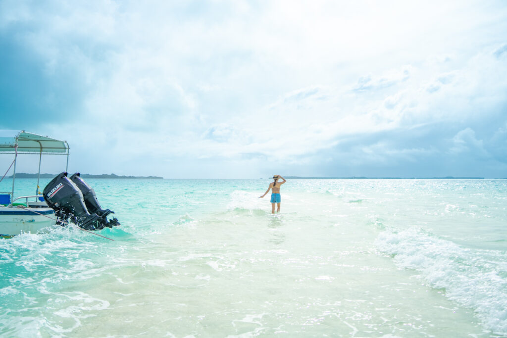 この日は残念ながら小潮(干満差が小さい日)で、完全に砂が露出し道になる状態ではありませんでしたが、それでも透き通った水越しに、白い砂が彼方まで続いていくのが見えました。