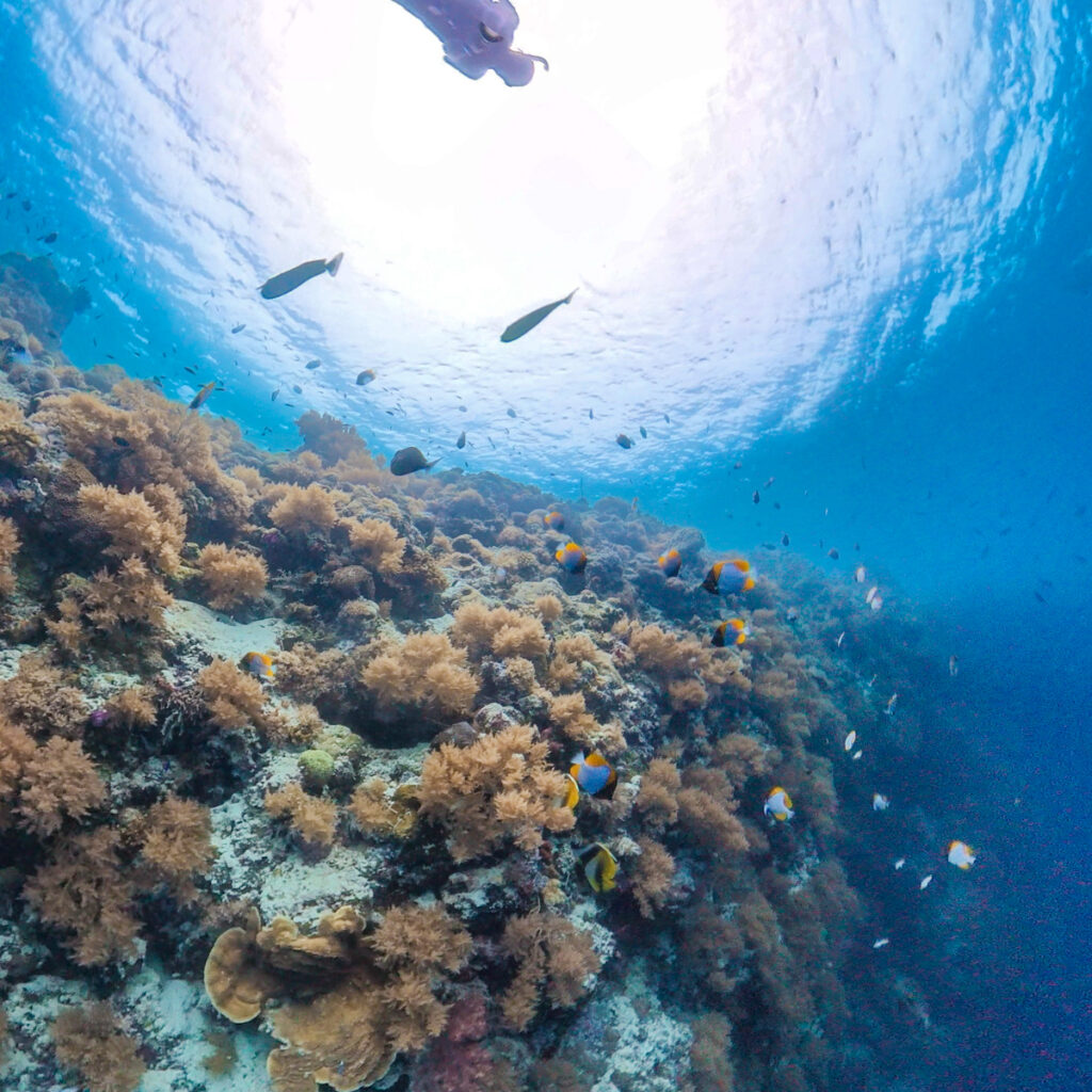 浅い棚は水深2mほどなので、シュノーケリング初心者でも大丈夫。