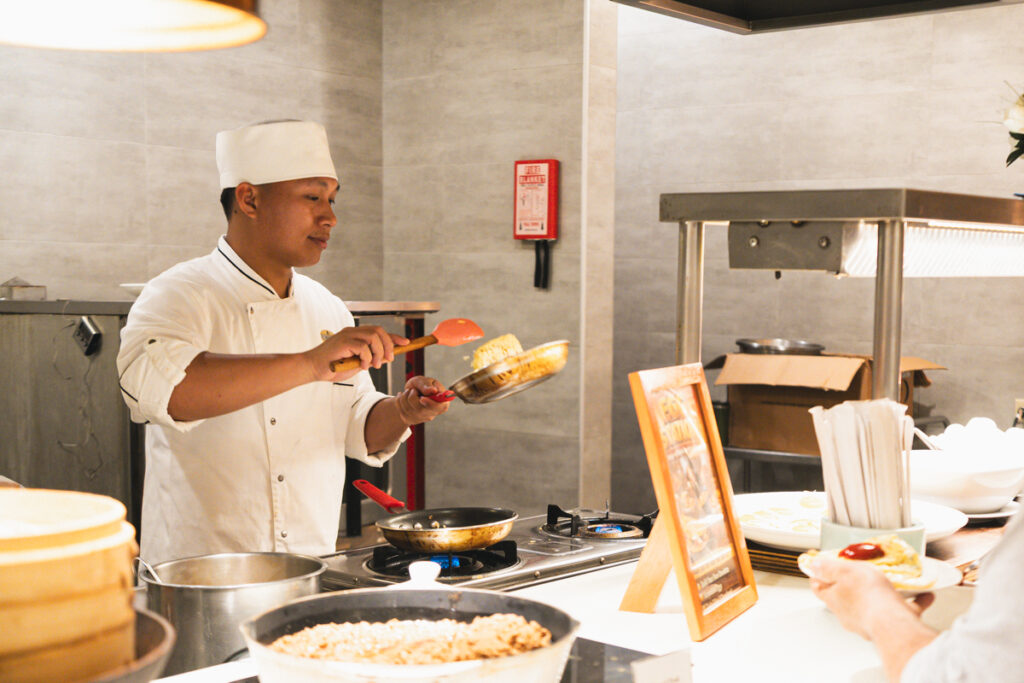 その場で卵料理を作ってくれるライブキッチンに、自分好みに仕上げるラーメンステーション、せいろでほかほかに蒸された点心など、朝から心躍るラインナップです。