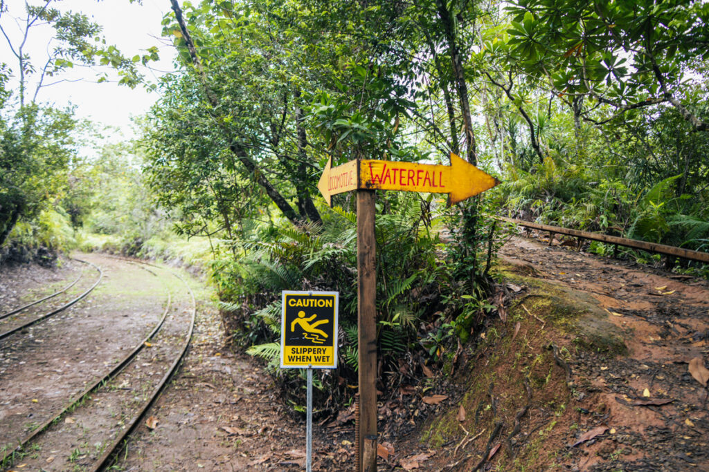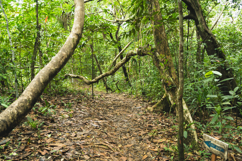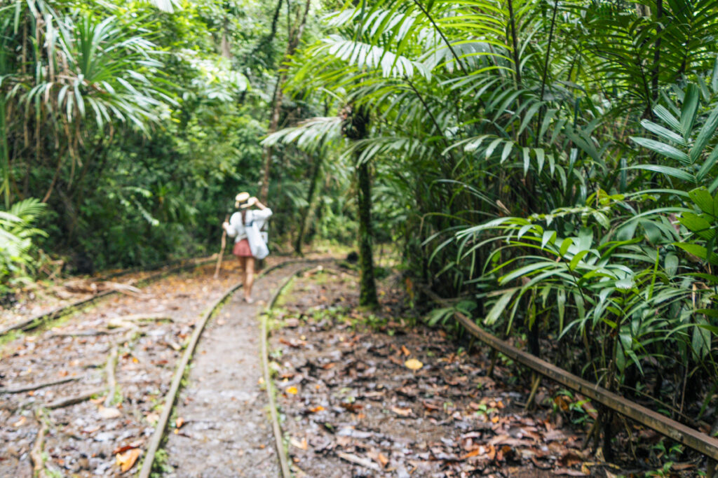 前半は、鬱蒼と茂るジャングルの中に残された「トロッコの廃路線」を辿るように進みます。