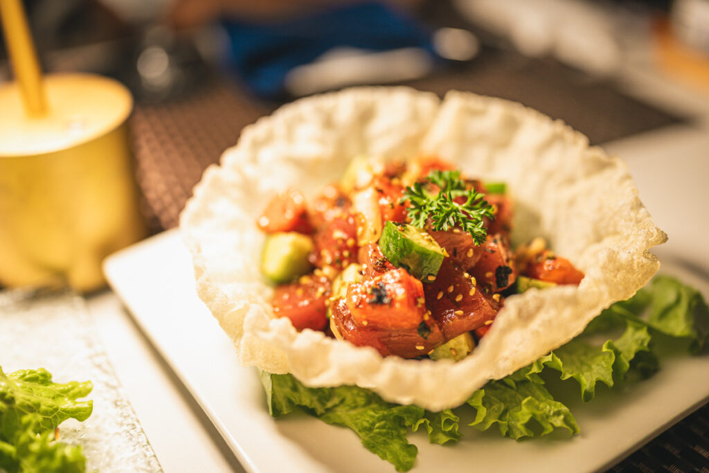 提供されるのは、パラオの地魚を中心としたシーフードや有機野菜など、地元の新鮮な食材を使った多国籍料理。