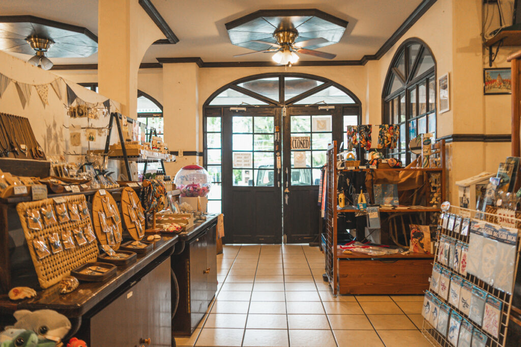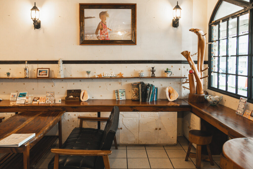 白を基調にした明るい店内に、カフェを併設したギフトショップ。キャンドルや石鹸などセンスの良い雑貨が並び、友達や自分用のお土産にピッタリなアイテムが見つかります。