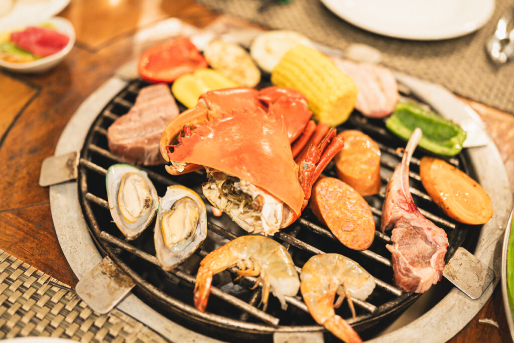 最後のディナーは、ホテルのレストランでビーチバーベキューを。