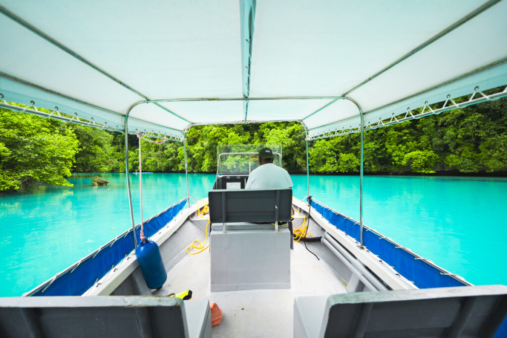 ドイツ植民地時代に作られた、潮の干満により色が変化する美しい人工水路ジャーマンチャネルなど、様々な見どころをみながら進んでいきます。潮位によっては断崖に残る古代の壁画をボートから眺められるかもしれません。